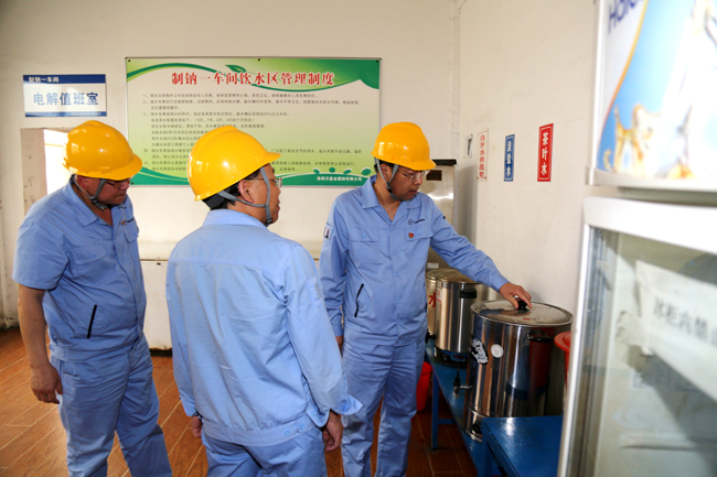 6月4日,集團公司黨委書記、董事長李躍民與黨委副書記、工會主席王宏偉,副總經(jīng)理姬攀峰一起深入鋁業(yè)、石墨、金屬鈉公司和板錠廠、棒材廠等生產一線,檢查防暑降溫工作落實情況。李躍民強調指出,各單位一定要把職工防暑降溫工作作為當前一個時期的重點工作抓細抓實抓到位,確保職工身心健康,安全度夏。