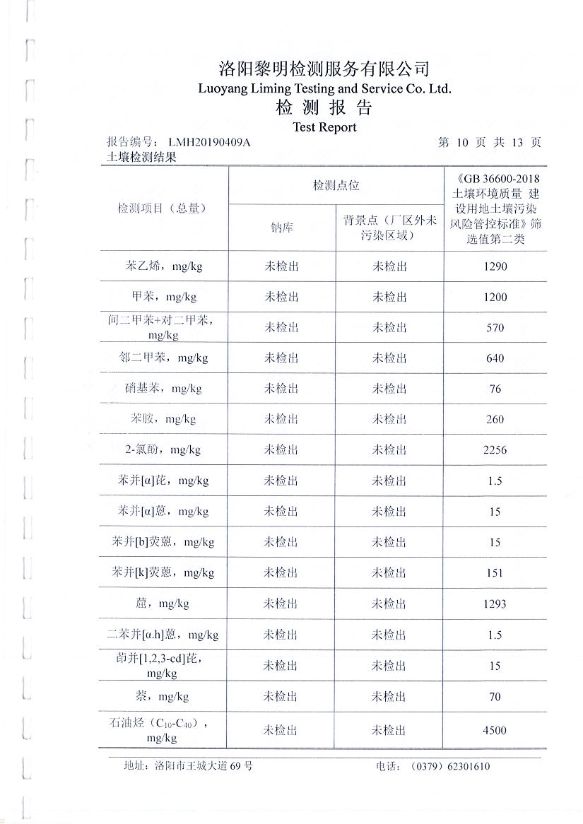 洛陽萬基金屬鈉公司土壤檢測報告公示